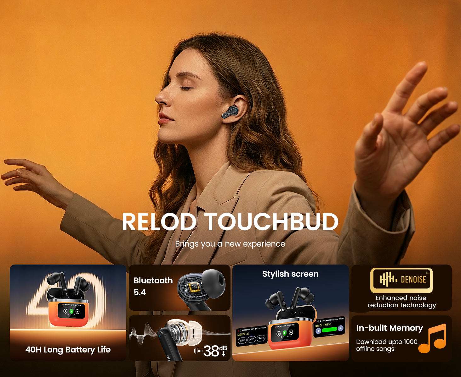 Designed for all-day comfort, Relod TouchBuds are lightweight, stable, and ergonomically shaped to fit perfectly during any activity. Enjoy hours of listening without ear strain, thanks to smooth edges and a comfortable fit.